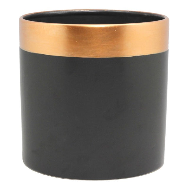 NEW SIZE SAME AS CE178BKC Two Tone Ceramic Pot in Matte Black with Copper Rim 18cm wide x 18cm high 18cmW x18cmH.